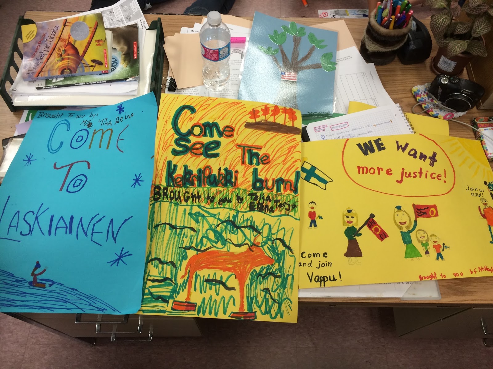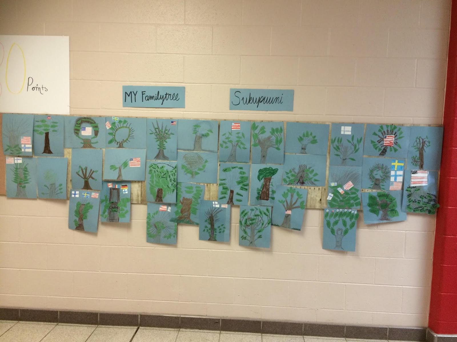The practical training is done now. It's been a great time at South Range Elementary School! The teachers and stuff there are super friendly and nice, so are the kids! That school feels like home. During the last week and a half we learned about Finnish oddities and children's families. We learned about Finnish celebrations like Midsummer night, May first, Kekri and other non-religious celebrations. We built family trees and during the last days we watched a lot of Moomins. That was great!